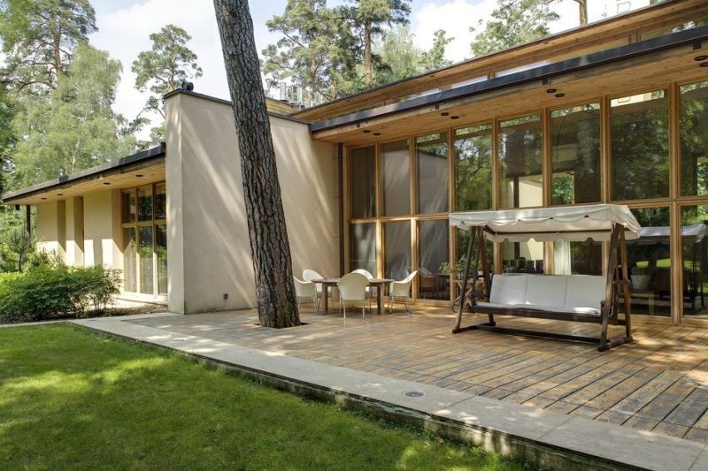 На территории 30 домов от 400 до 2950 м² с участками от 30 до 150 соток, которые можно купить или снять в аренду. Особняки выполнены по авторским архитектурным проектам. Большое внимание в КП уделено планировкам, внешнему и внутреннему обустройству домов, которые отвечают требованиям комфортной жизни за городом. Дома расположены на возвышенности, в окружении хвойного леса. Дизайнеры сумели использовать достоинства неровного рельефа и создали яркие композиции с десятками видов растений.