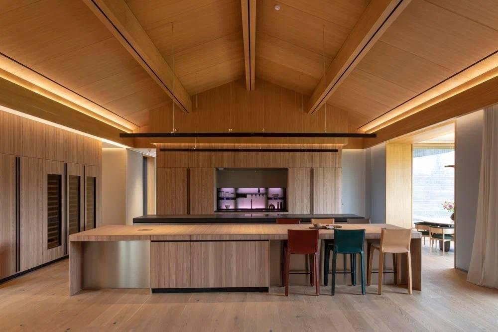 Приватная часть расположена на втором уровне — самое спокойное место в доме. Спальная комната хозяев выходит на мини-террасу, соседствуя с игровой и детской спальней, библиотекой и камерной гостиной для самых близких. Комнаты разделяют "ситтинги" с мягким светом и уютными креслами.