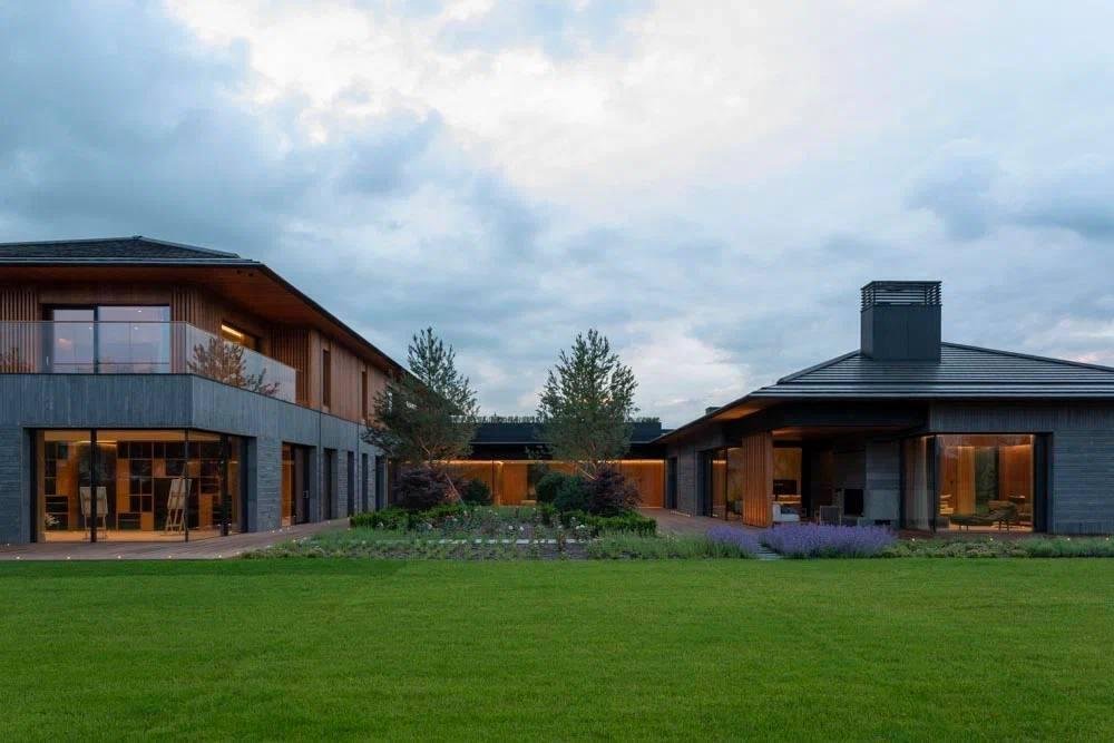 Виллы представляет собой двухуровневое здание, соединенное одноэтажным переходом с парадным холлом, ориентированным на бульвар, и внутренним двориком с видом на сад и окружающий природный ландшафт.