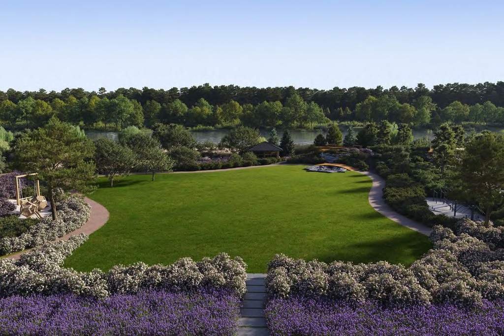 Лобби сменяется просторным холлом, ведущим в столовую и кинозал. Столовая выходит на общую террасу. Справа— гостевые, слева — большая гостиная и каминный зал с библиотекой.