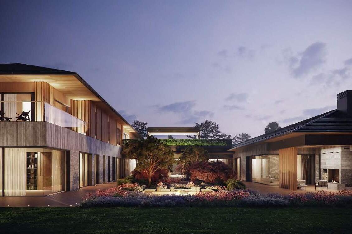 Виллы представляет собой двухуровневое здание, соединенное одноэтажным переходом с парадным холлом, ориентированным на бульвар, и внутренним двориком с видом на сад и окружающий природный ландшафт.