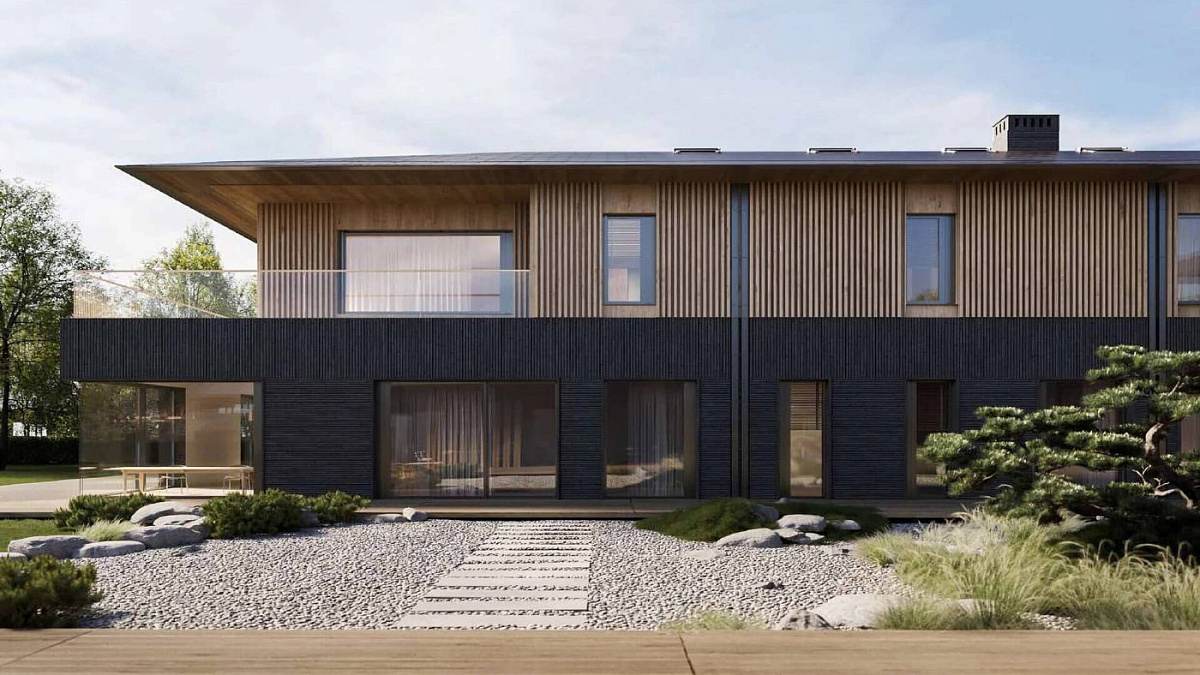 Вилла на этапе окончания строительных работ и работ по благоустройству участка, срок готовности 1 квартал 2025 г.