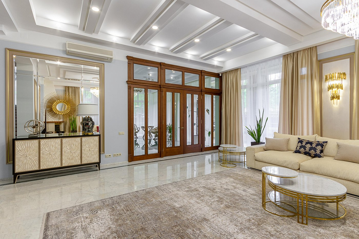 1 этаж: холл, с/у, кабинет, гостиная, зимний сад, кухня;