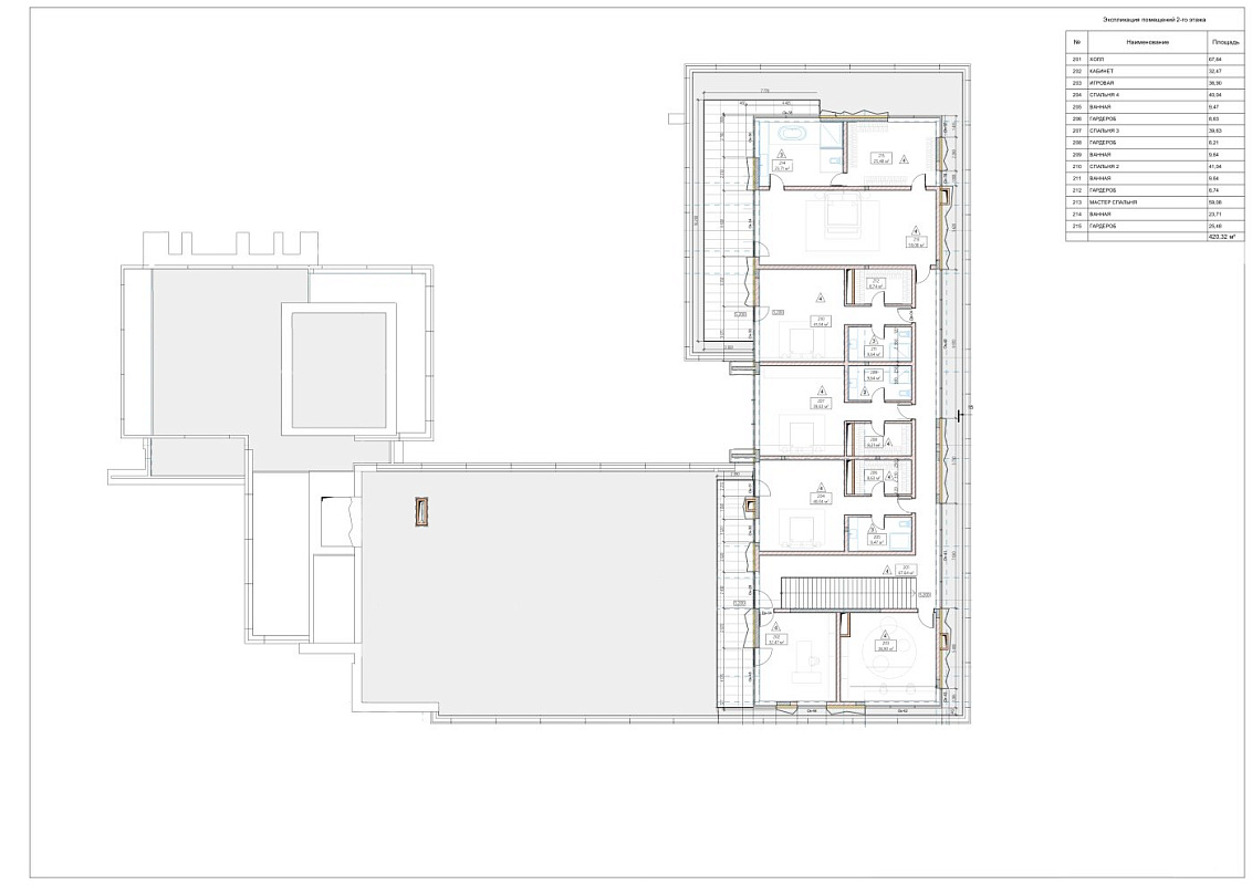 2 этаж: холл, кабинет, игровая, мастер-спальня с ванной и гардеробной, 3 спальни с с/у и гардеробными.