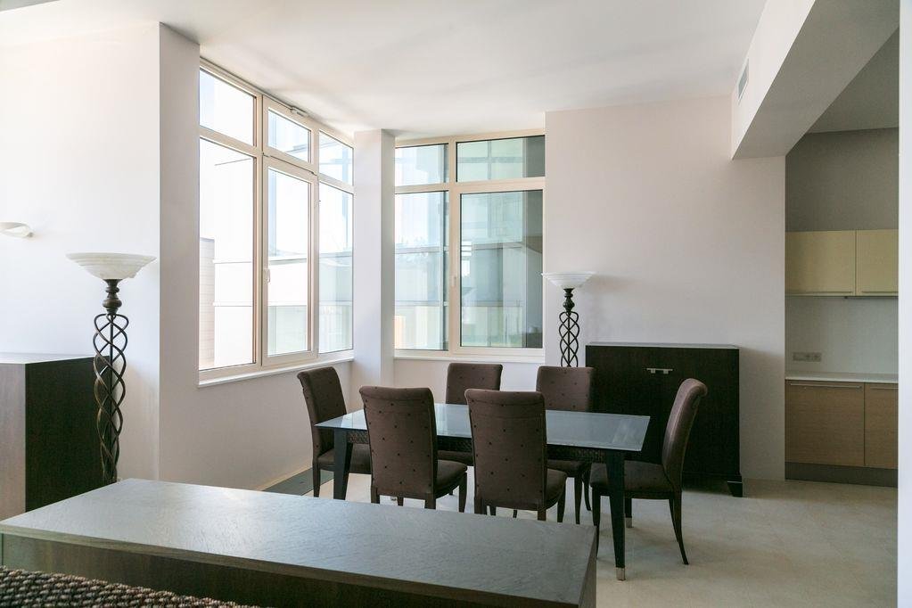 В квартире: прихожая с гардеробом, гостиная-столовая, кухня, 2 спальни со своими с/у и гардеробными. Сдается с машино-местом.