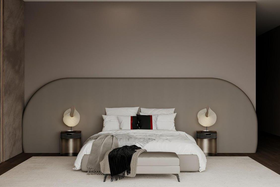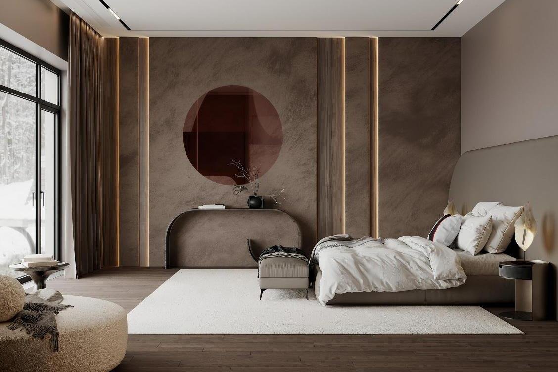 2 этаж: мастер-блок (спальня, гардеробная, с/у, кабинет), 3 спальни, каждая с с/у и гардеробной, постирочная, блок для персонала с отдельным входом (кухня, 2 спальни, с/у).