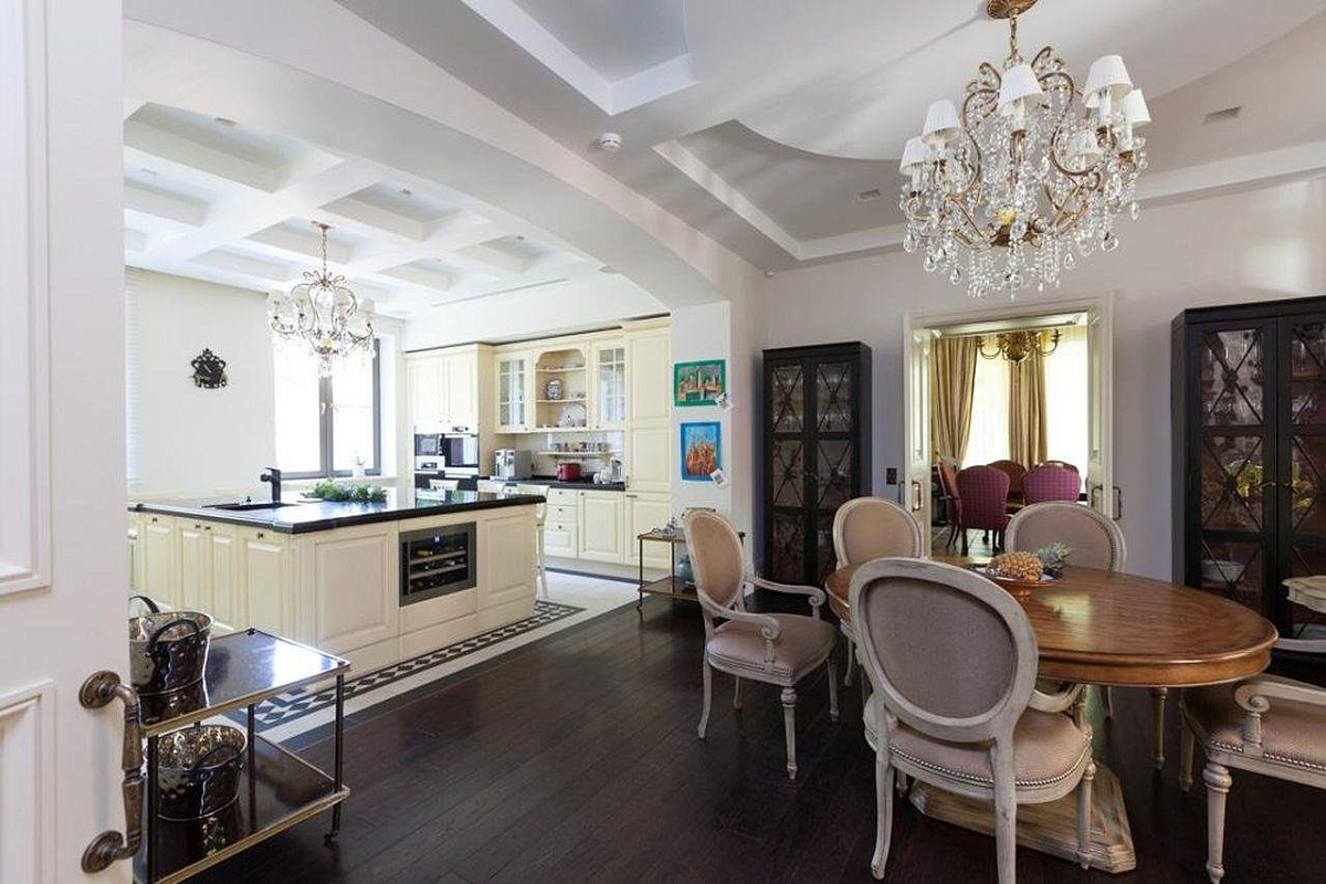 Элегантный загородный дом расположен в коттеджном поселке «Жуковка-2». Трехуровневый особняк оформлен по авторскому проекту в классическом английском стиле. В отделке использовались натуральный мрамор и ценные породы дерева. Большая часть мебели была создана по индивидуальному заказу ведущими итальянскими, американскими и английскими компаниями. На территории оборудованы патио с мангалом, печью и тандыром, а также площадка для разведения костра.