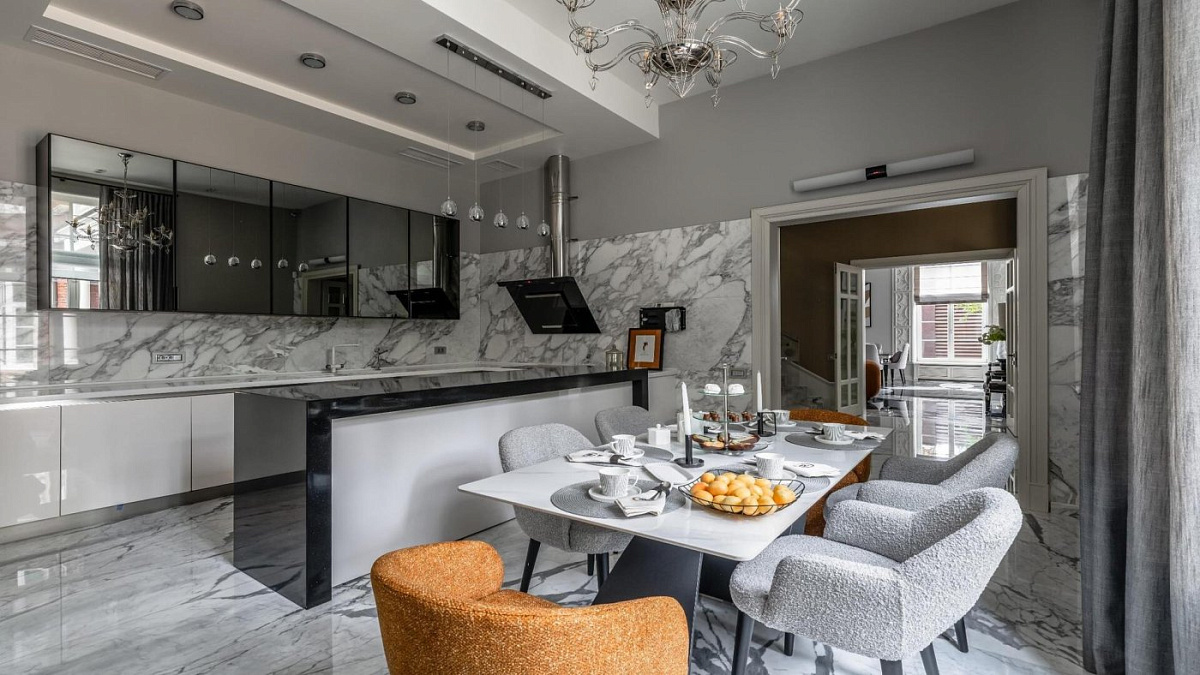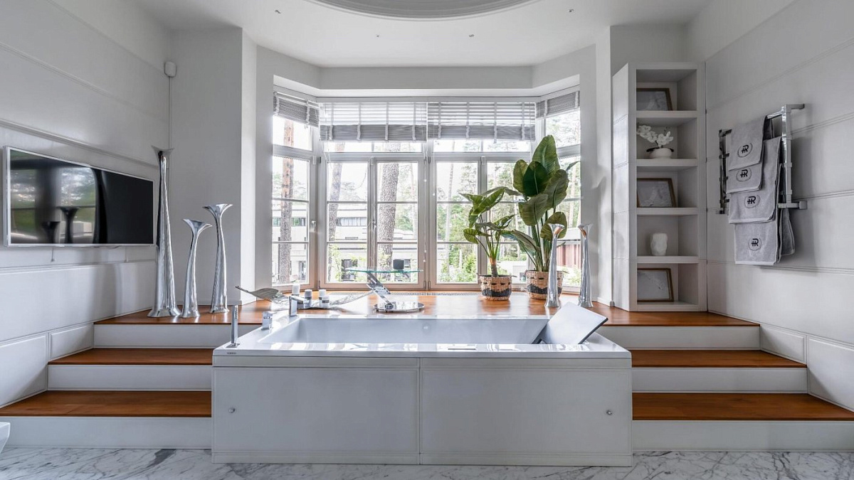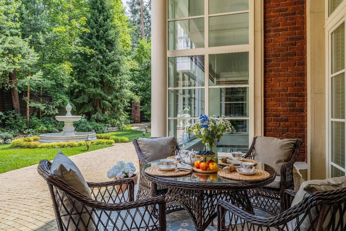 Прекрасная резиденция в английском стиле, окружённая вековыми соснами. Площадь основного дома составляет 888 кв. м; установлены система вентиляции и кондиционирования, видеонаблюдение. Дом полностью оборудован и укомплектован всей необходимой техникой и мебелью. В 2025 году был выполнен ремонт.